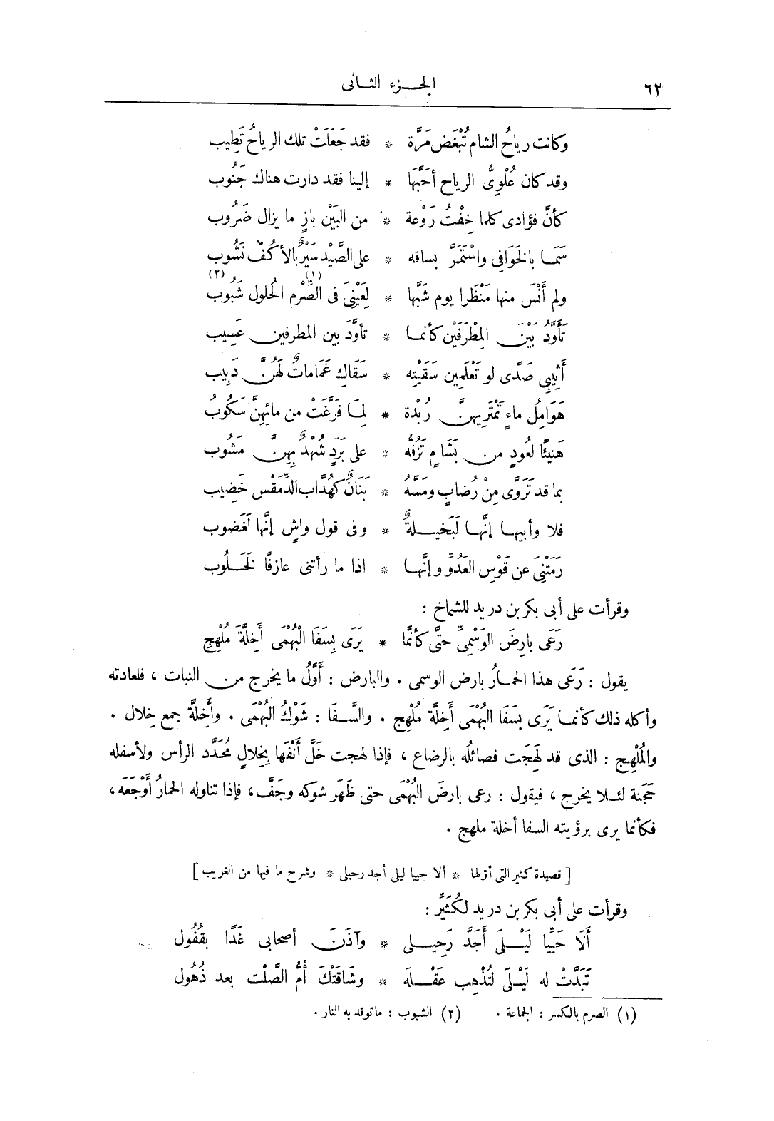 وقرأت عَلَى أَبِي بَكْرِ بن دريد، لكثير:
