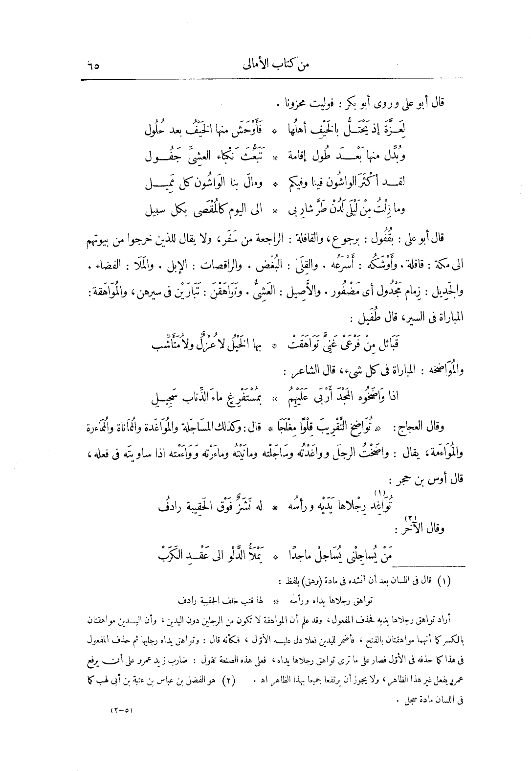 وقَالَ العجاج: تواضح التقريب قلواً مغلجاً قَالَ: وكذلك المساجلة والمواغدة والمماناة والمماءرة والمواءمة، يُقَال: واضخت الرجل وواغدته وساجلته ومانيته ومارءته وواءمته إذا ساويته فِي فعله، قَالَ أوس بن حجر: