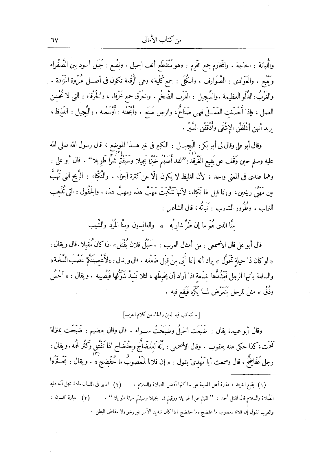 والبجيل: الغليظ، يريد أنهن أغلظن الإشفى وأدققن السير، وقَالَ لي أَبُو بَكْرٍِ: البجيل: الكبير فِي غير هذا الموضع، وقَالَ رَسُولُ اللَّهِ صَلَّى اللهُ عَلَيْهِ وَسَلَّمَ حين وقف عَلَى بقيع الغرقد: لقد أصبتم خيراً بجيلا وسبقتم شرا طويلا.