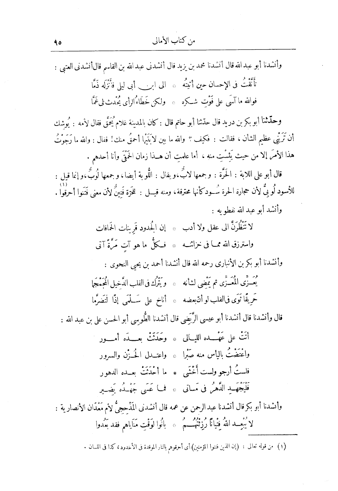 وأنشدنا أَبُو بَكْرِ بن الأنباري، رحمه الله، قَالَ: أنشدنا أحمد بن يحيى النحوي: يعزّى المعزّى ثم يمضي لشأنه ويترك فِي القلب الدّخيل المجمجما حريقاً ثوى فِي القلب لو أنّ بعضه أناخ عَلَى سلمى إذاً لتضرّما