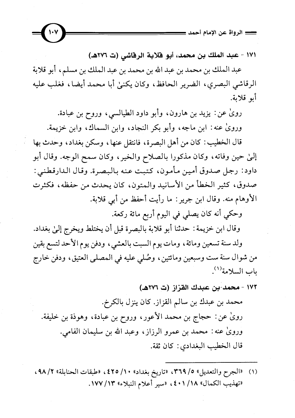 (¬1) "الجرح والتعديل" 5/ 369، "تاريخ بغداد" 10/ 425، "طبقات الحنابلة" 2/ 98، "تهذيب الكمال" 18/ 401، "سير أعلام النبلاء" 13/ 177.