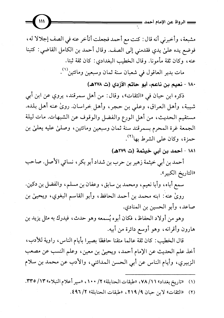 181 - أحمد بن أبي خيثمة (ت 279 هـ)