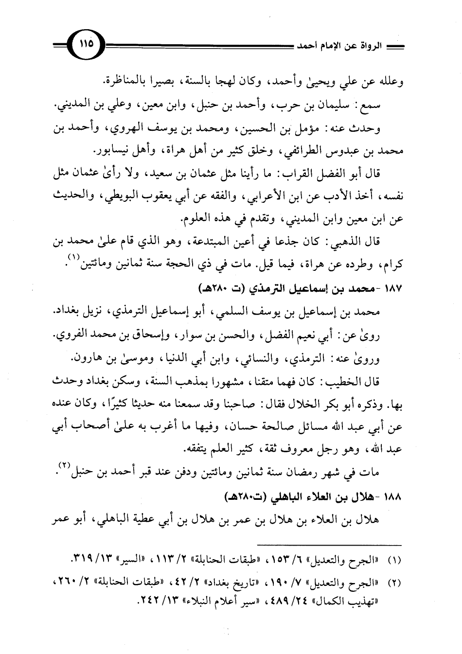 187 - محمد بن إسماعيل الترمذي (ت 280 هـ)