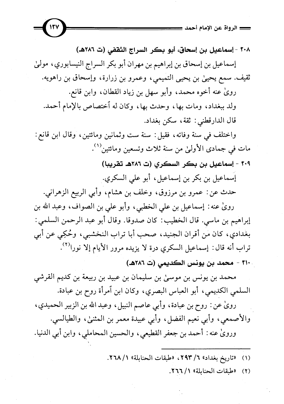 208 - إسماعيل بن إسحاق، أبو بكر السراج الثقفي (ت 286 هـ)