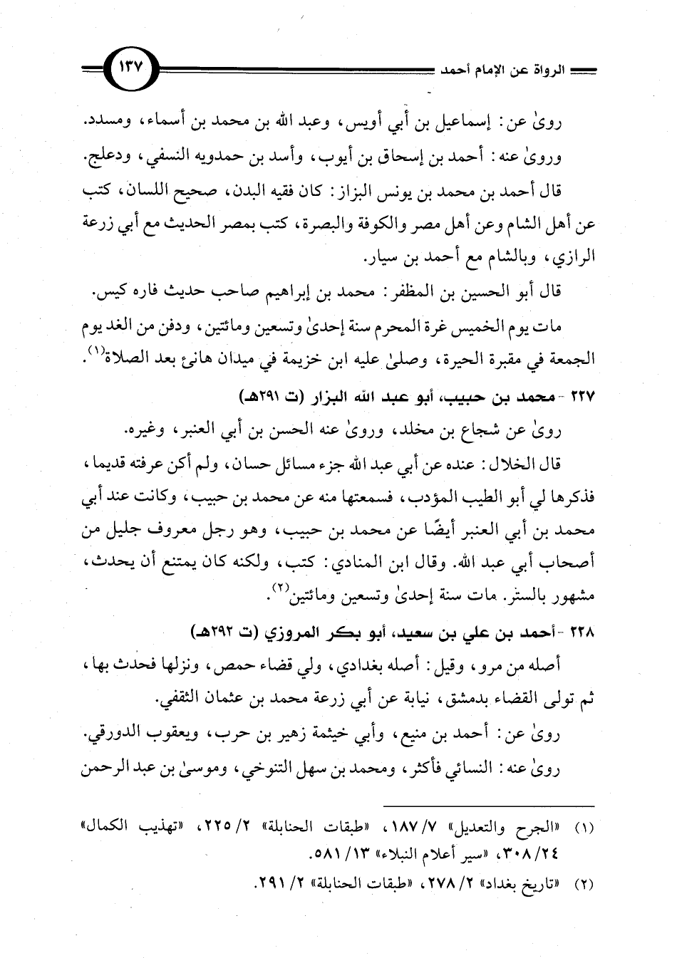 (¬2) "تاريخ بغداد" 2/ 278، "طبقات الحنابلة" 2/ 291.