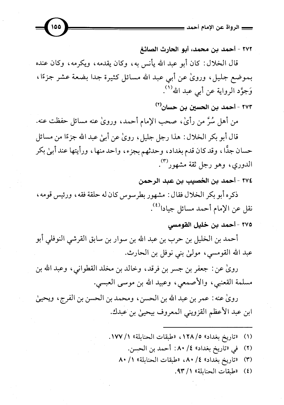 (¬3) "تاريخ بغداد" 4/ 80، "طبقات الحنابلة" 1/ 80.