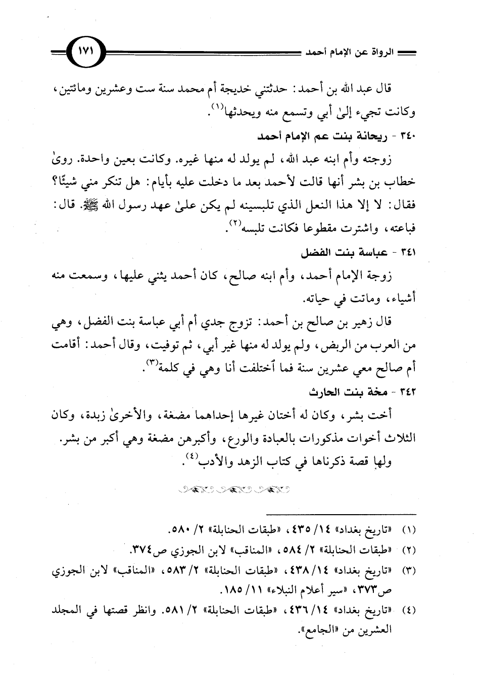 (¬1) "تاريخ بغداد" 14/ 435، "طبقات الحنابلة" 2/ 580.