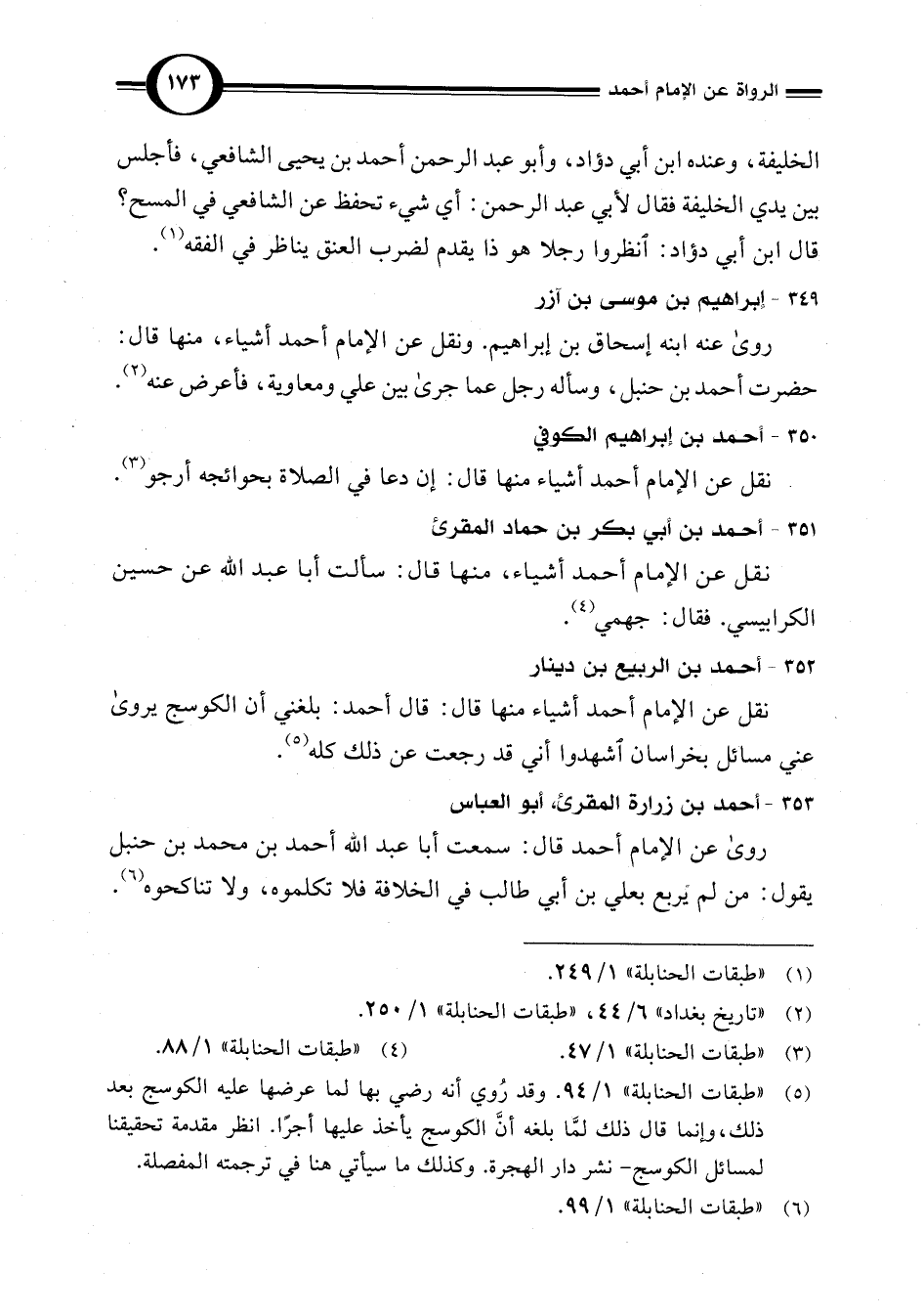(¬2) "تاريخ بغداد" 6/ 44، "طبقات الحنابلة" 1/ 250.