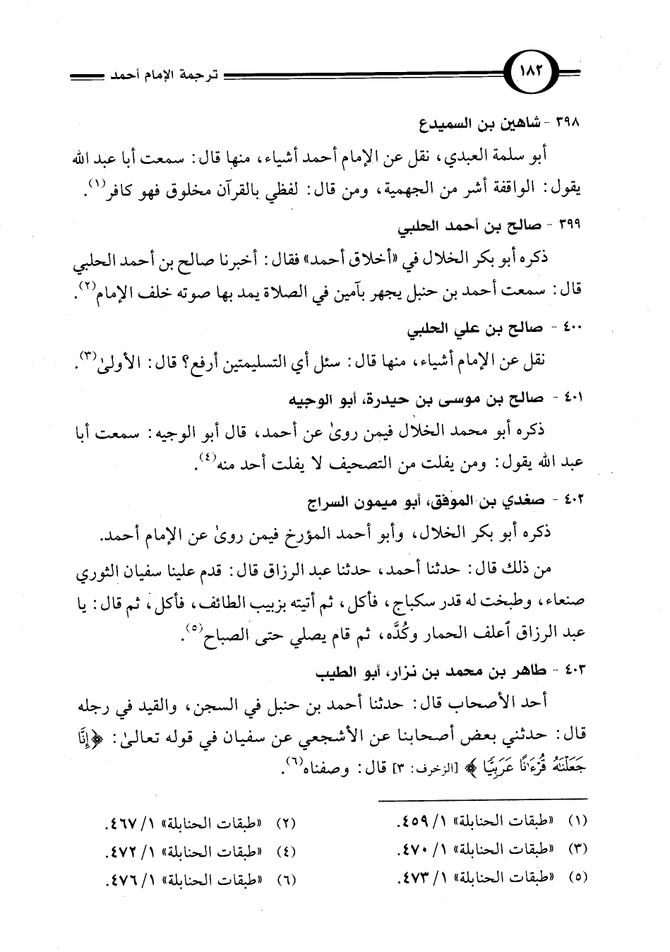 (¬6) "طبقات الحنابلة" 1/ 476.