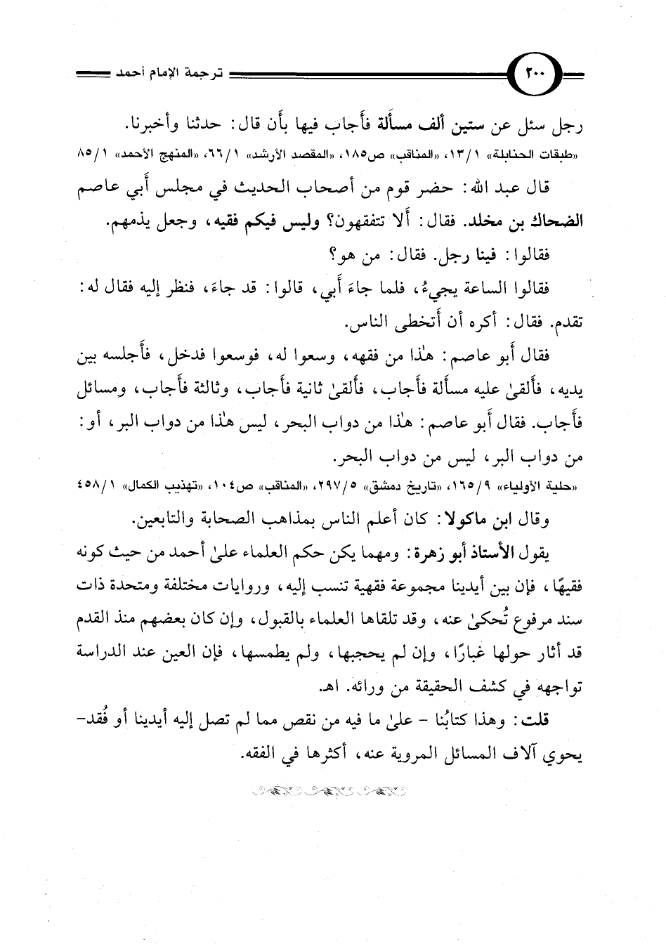 يقول الأستاذ أبو زهرة: ومهما يكن حكم العلماء على أحمد من حيث كونه فقيهًا، فإن بين أيدينا مجموعة فقهية تنسب إليه، وروايات مختلفة ومتحدة ذات سند مرفوع تُحكى عنه، وقد تلقاها العلماء بالقبول، وإن كان بعضهم منذ القدم قد أثار حولها غبارًا، وإن لم يحجبها، ولم يطمسها، فإن العين عند الدراسة تواجهه في كشف الحقيقة من ورائه. اهـ.