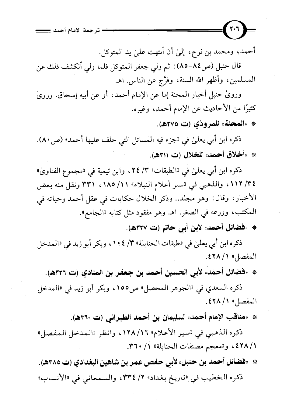 * " فضائل أحمد بن حنبل" لأبي حفص عمر بن شاهين البغدادي (ت 385 هـ).