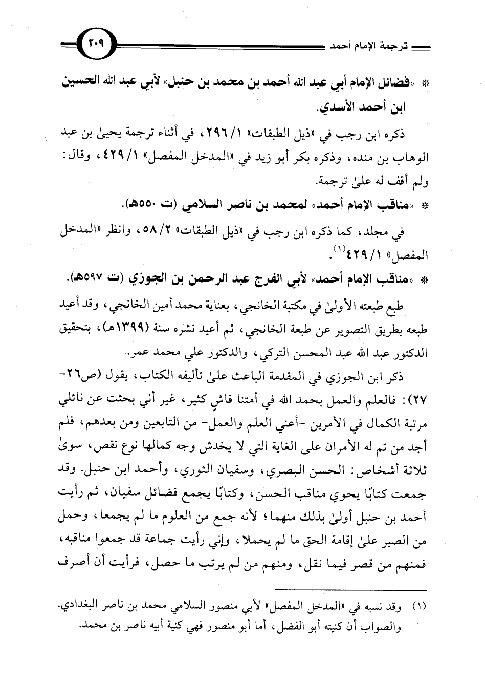 * " مناقب الإمام أحمد" لأبي الفرج عبد الرحمن بن الجوزي (ت 597 هـ).