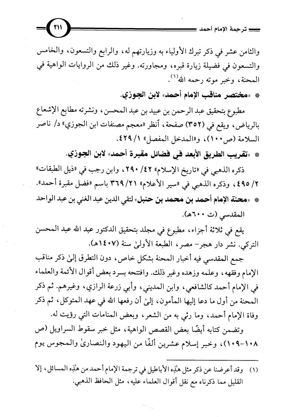 * " مختصر مناقب الإمام أحمد" لابن الجوزي.