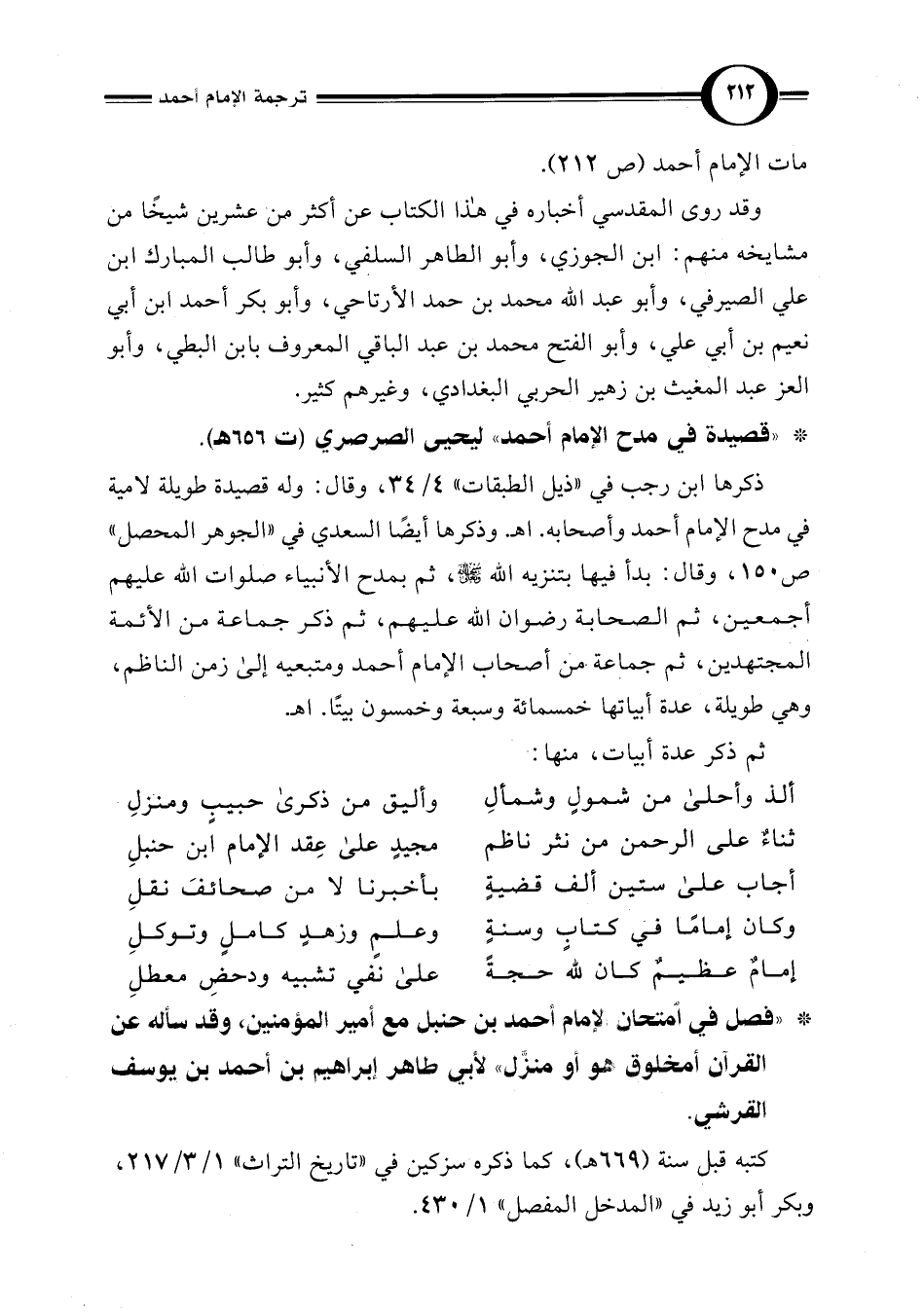 * " قصيدة في مدح الإمام أحمد" ليحيى الصرصري (ت 656 هـ).