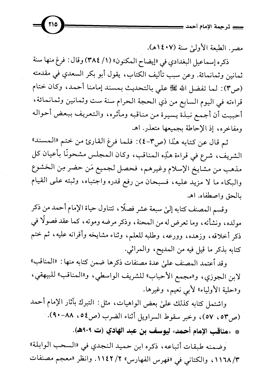 * " مناقب الإمام أحمد" ليوسف بن عبد الهادي (ت 909 هـ).