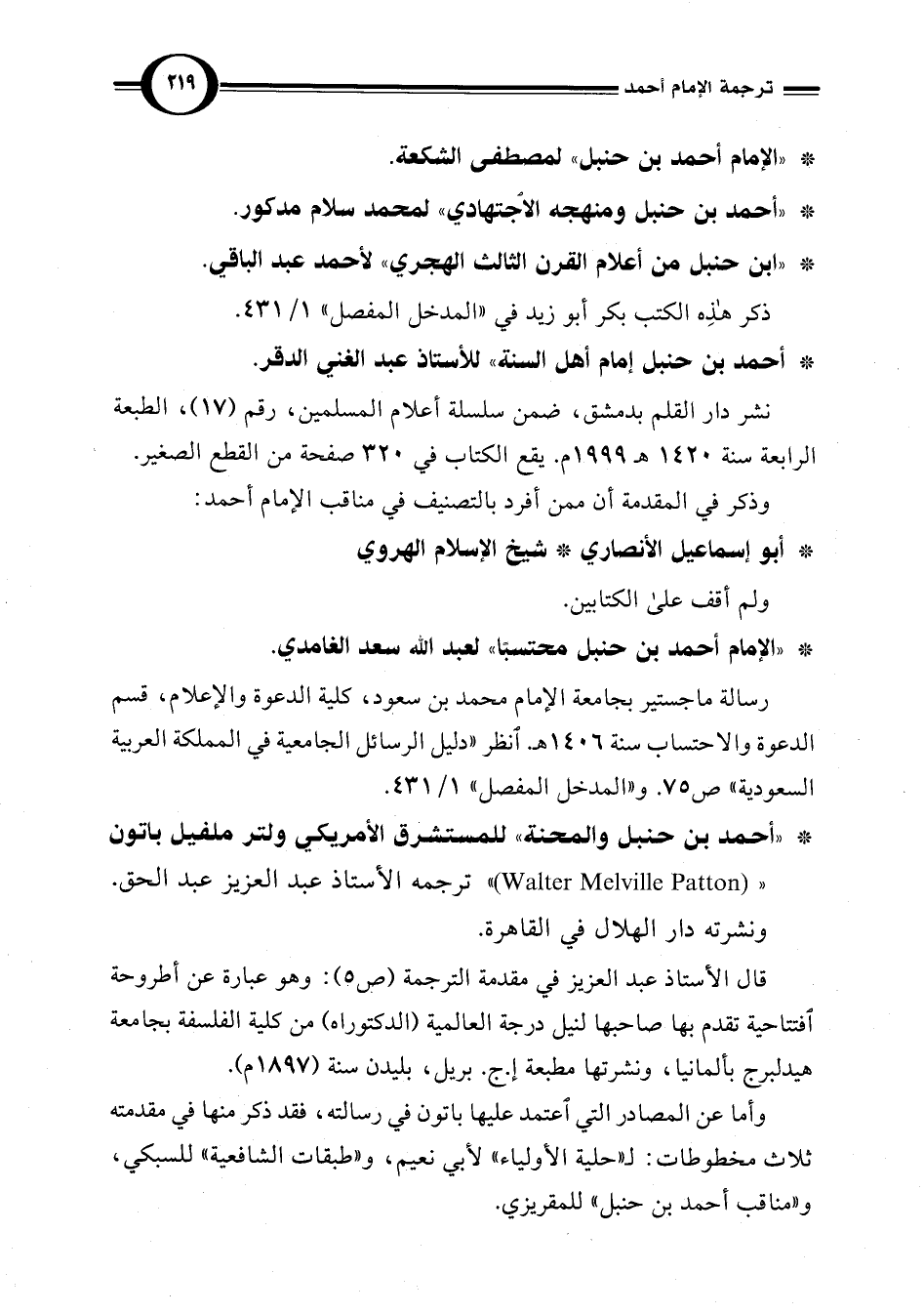 * " الإمام أحمد بن حنبل" لمصطفى الشكعة.