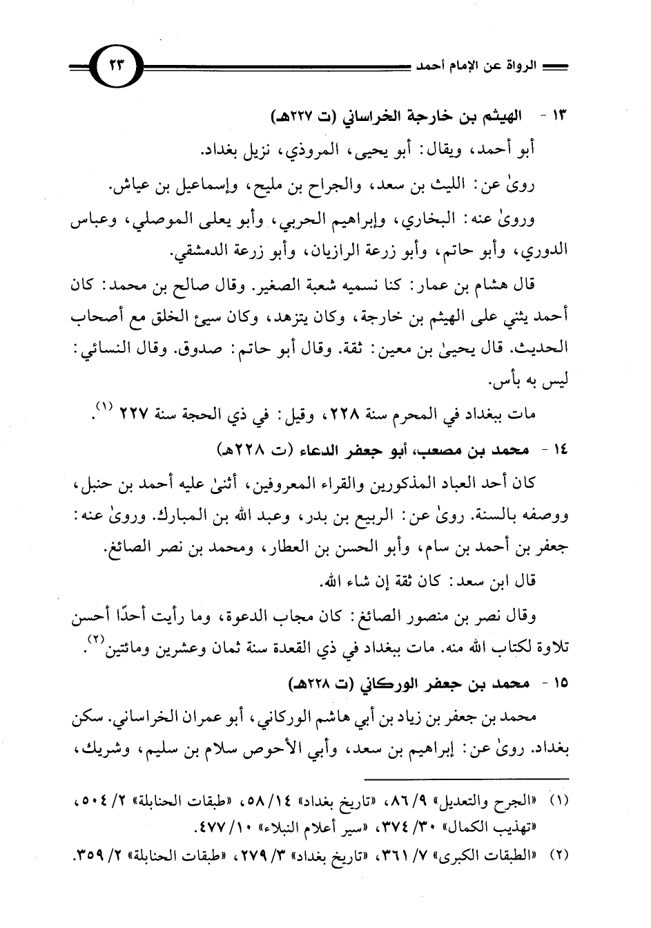 (¬2) "الطبقات الكبرى" 7/ 361، "تاريخ بغداد" 3/ 279، "طبقات الحنابلة" 2/ 359.