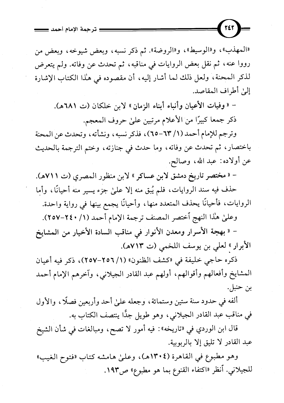 وعلى هذا النهج اختصر المصنف ترجمة الإمام أحمد (1/ 240 - 257).