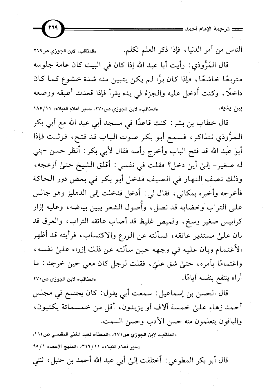 "المناقب" لابن الجوزي ص 270، "سير أعلام النبلاء" 11/ 185