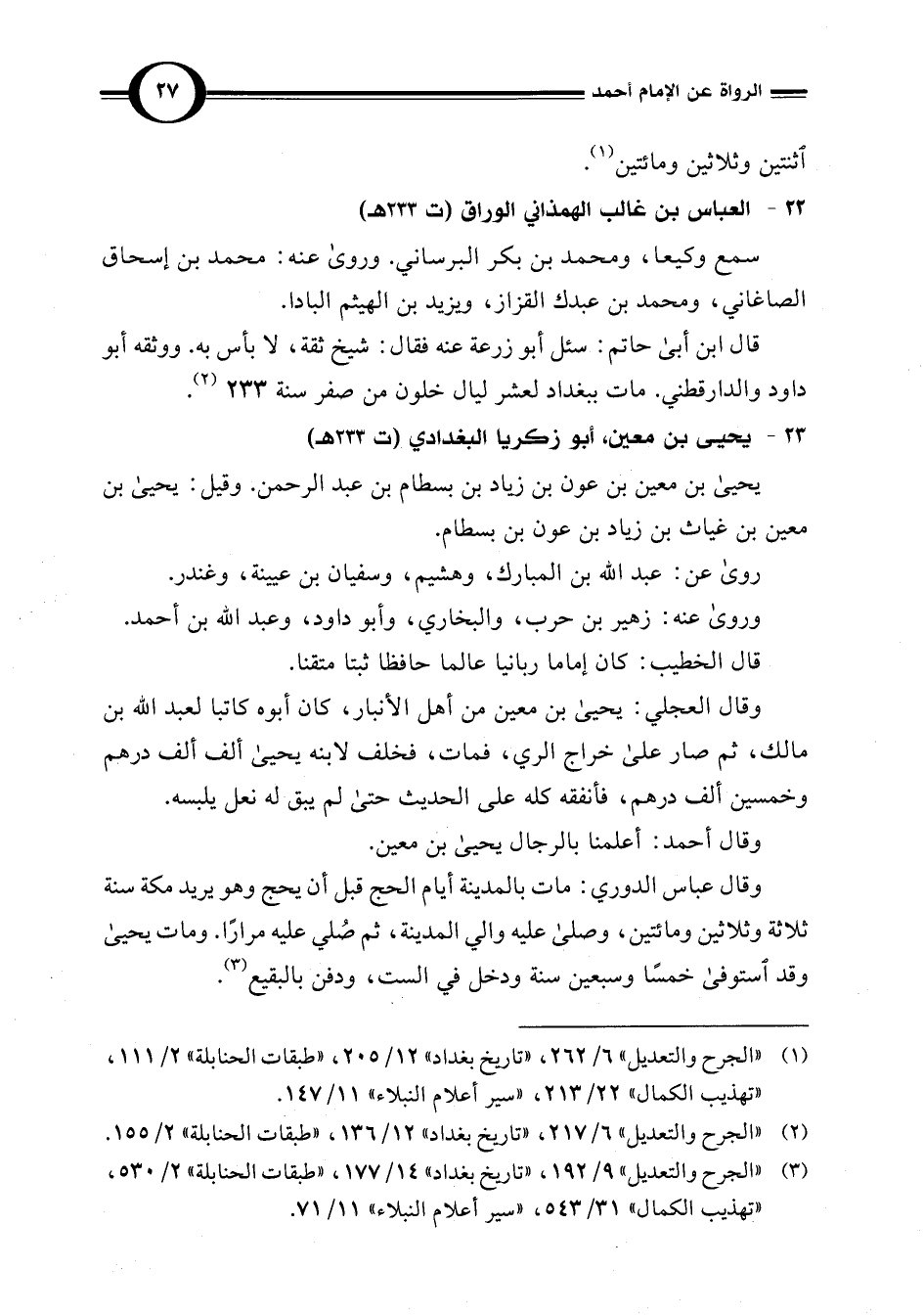 23 - يحيى بن معين، أبو زكريا البغدادي (ت 233 هـ)