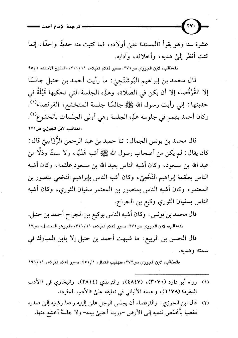 "المناقب" لابن الجوزي ص 271، "سير أعلام النبلاء" 11/ 316، "المنهج الأحمد" 1/ 95