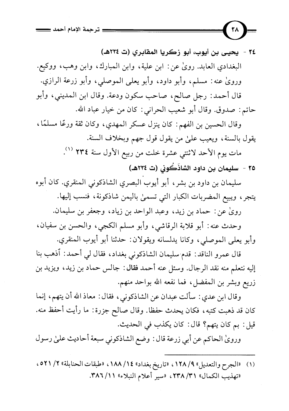 (¬1) "الجرح والتعديل" 9/ 128، "تاريخ بغداد" 14/ 188، "طبقات الحنابلة" 2/ 521، "تهذيب الكمال" 31/ 238، "سير أعلام النبلاء" 11/ 386.