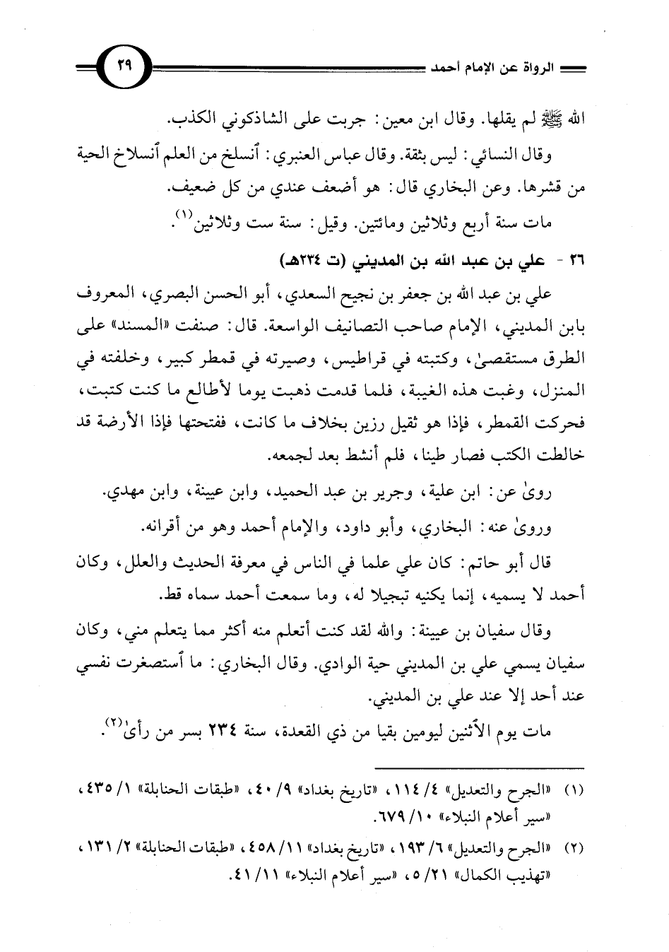 26 - علي بن عبد اللَّه بن المديني (ت 234 هـ)