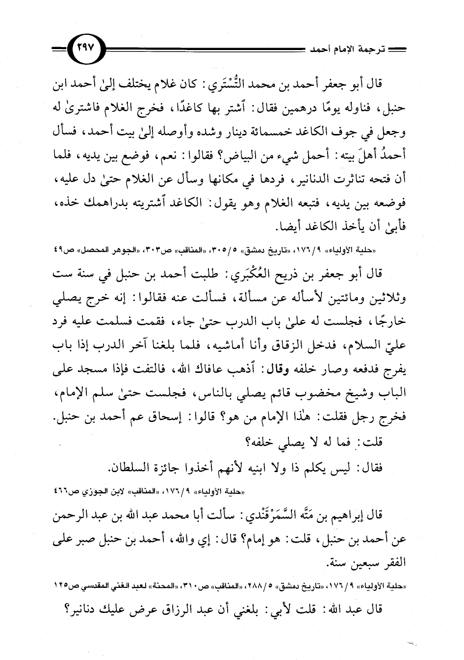 "حلية الأولياء" 9/ 176، "تاريخ دمشق" 5/ 288، "المناقب" ص 310، "المحنة" لعبد الغني المقدسي ص 125