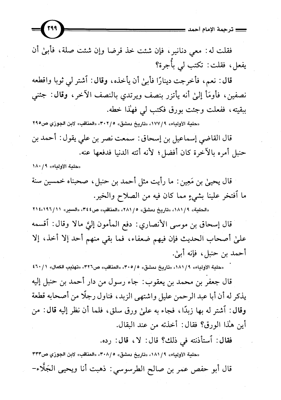 "حلية الأولياء" 9/ 181، "تاريخ دمشق" 5/ 308، "المناقب" لابن الجوزي ص 333