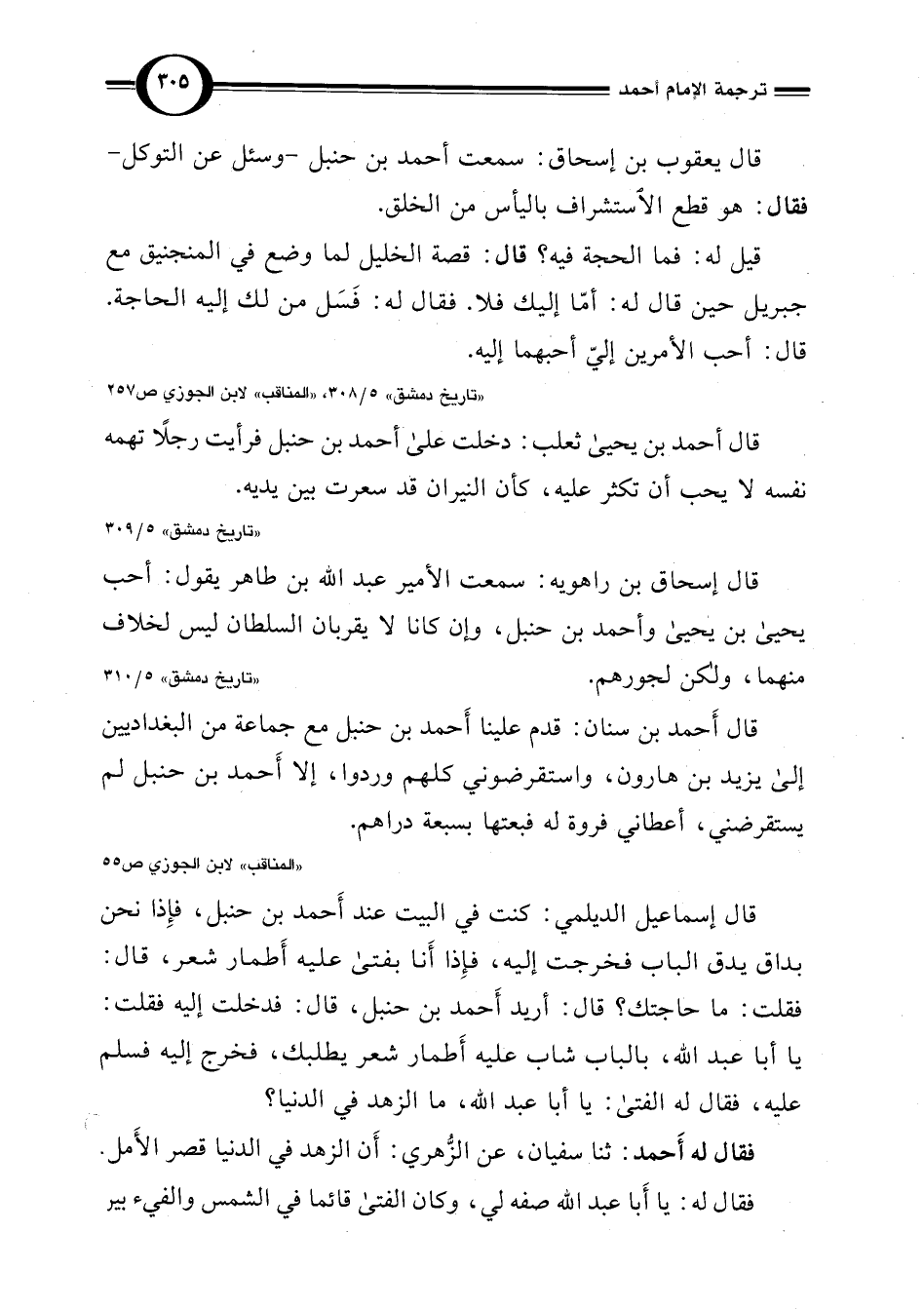 "تاريخ دمشق" 5/ 308، "المناقب" لابن الجوزي ص 257