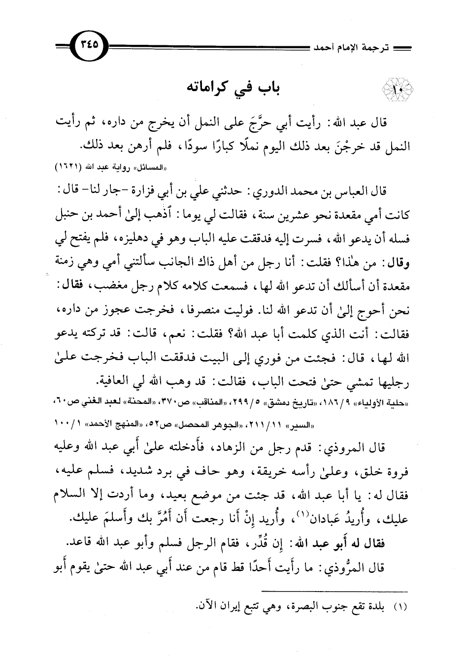 "حلية الأولياء" 9/ 186، "تاريخ دمشق" 5/ 299، "المناقب" ص 370، "المحنة" لعبد الغني ص 60، "السير" 11/ 211، "الجوهر المحصل" ص 52، "المنهج الأحمد" 1/ 100