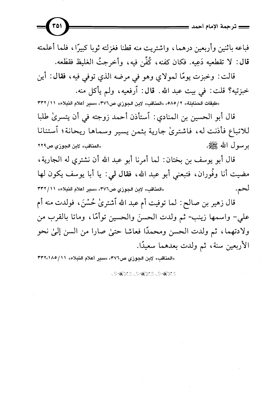 "المناقب" لابن الجوزي ص 376، "سير أعلام النبلاء" 11/ 185، 332