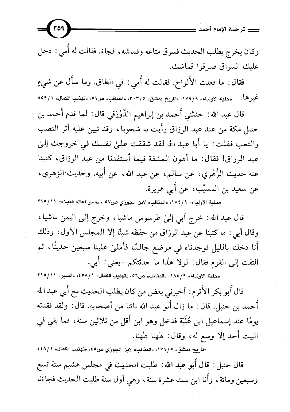 "تاريخ دمشق" 5/ 176، "المناقب" لابن الجوزي ص 45، "تهذيب الكمال" 1/ 448
