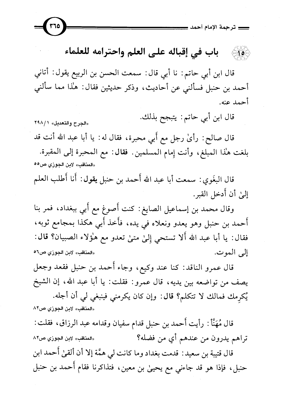 15 - باب في إقباله على العلم واحترامه للعلماء