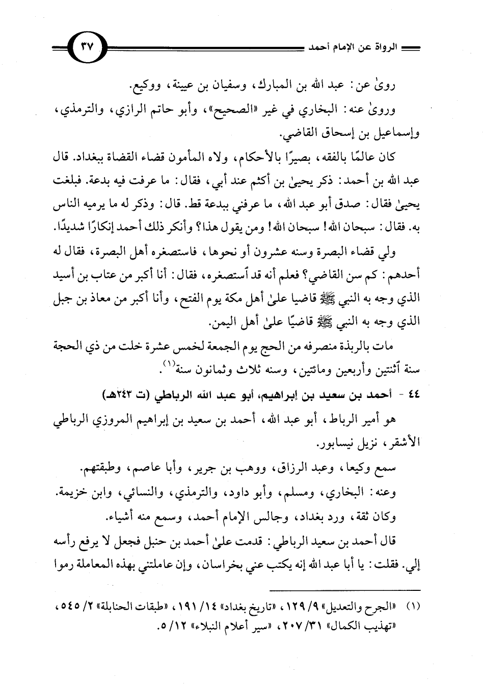 44 - أحمد بن سعيد بن إبراهيم، أبو عبد اللَّه الرباطي (ت 243 هـ)