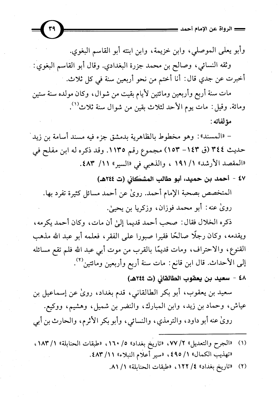 (¬2) "تاريخ بغداد" 4/ 122، "طبقات الحنابلة" 1/ 81.