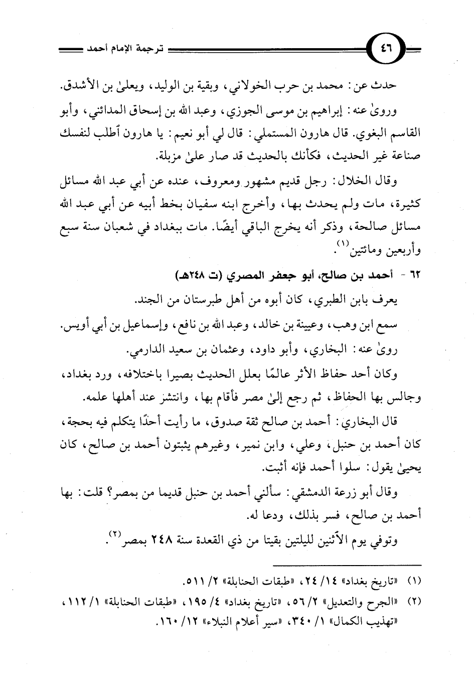 (¬2) "تاريخ بغداد" 14/ 24، "طبقات الحنابلة" 2/ 511.