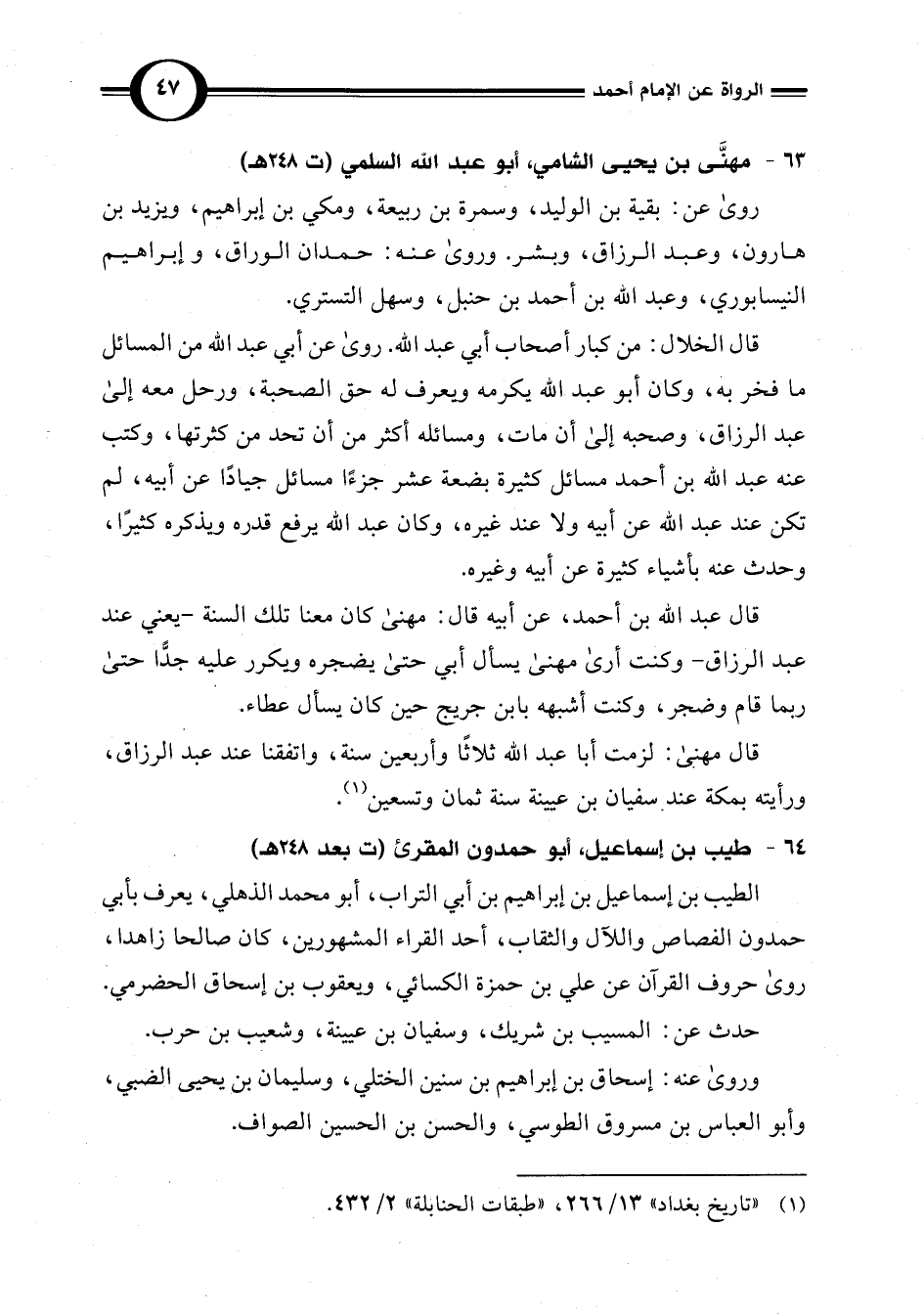 63 - مهنَّى بن يحيى الشامي، أبو عبد اللَّه السلمي (ت 248 هـ)