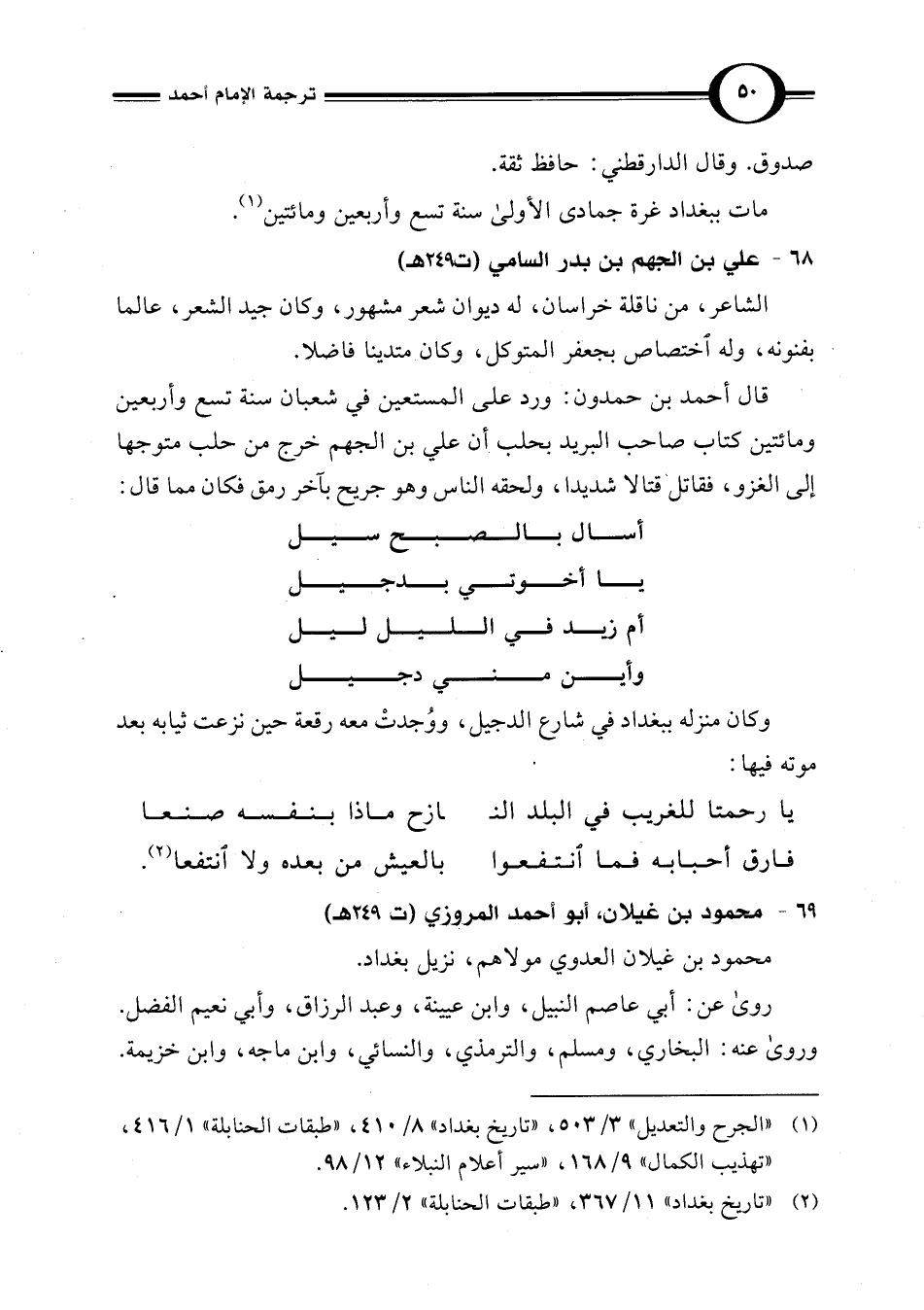 (¬2) "تاريخ بغداد" 11/ 367، "طبقات الحنابلة" 2/ 123.