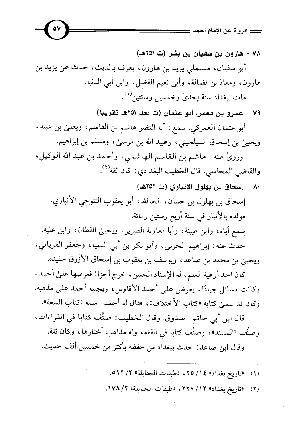 (¬2) "تاريخ بغداد" 12/ 220، "طبقات الحنابلة" 2/ 178.
