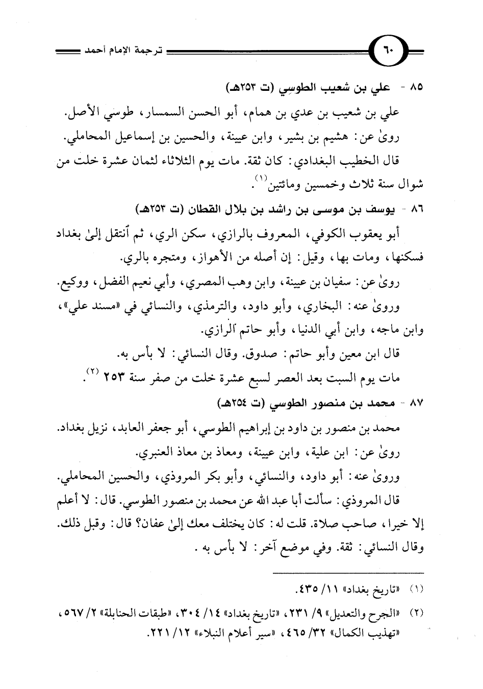 (¬2) "الجرح والتعديل" 9/ 231، "تاريخ بغداد" 14/ 304، "طبقات الحنابلة" 2/ 567، "تهذيب الكمال" 32/ 465، "سير أعلام النبلاء" 12/ 221.