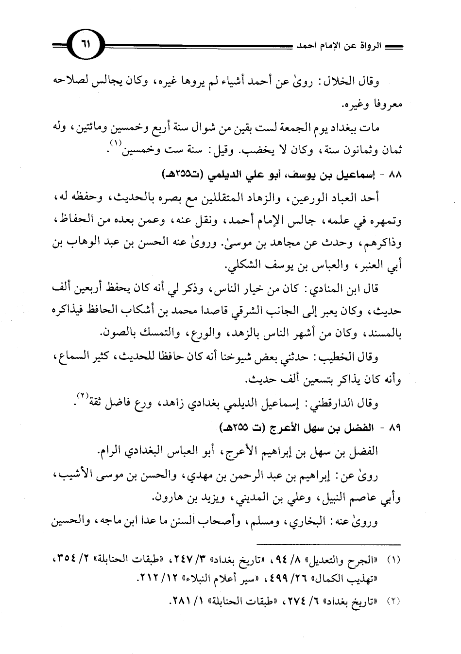 (¬2) "تاريخ بغداد" 6/ 274، "طبقات الحنابلة" 1/ 281.