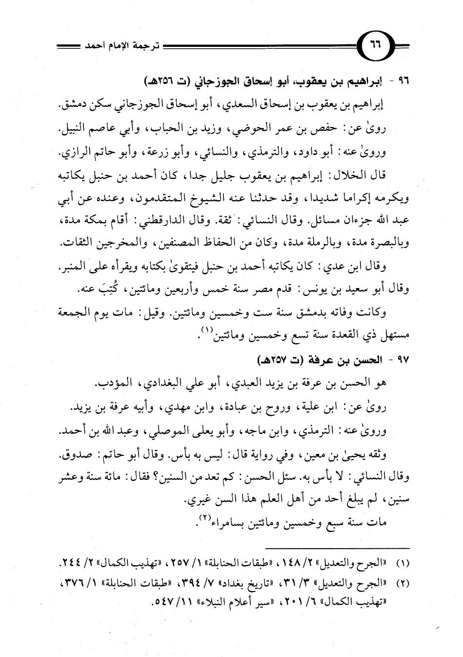 (¬1) "الجرح والتعديل" 2/ 148، "طبقات الحنابلة" 1/ 257، "تهذيب الكمال" 2/ 244.