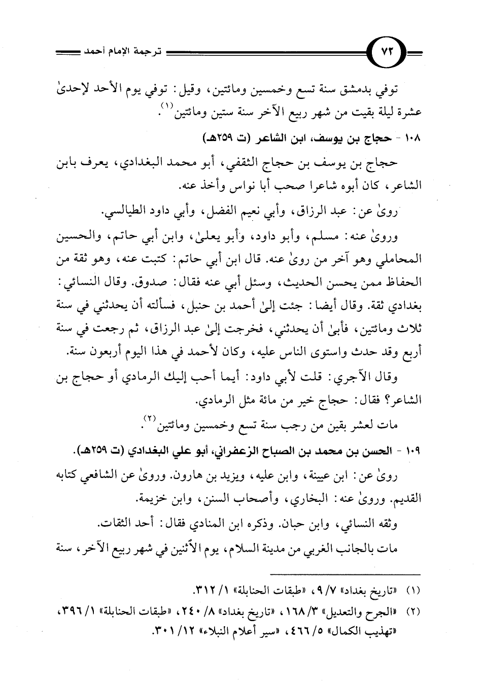 109 - الحسن بن محمد بن الصباح الزعفراني، أبو علي البغدادي (ت 259 هـ).
