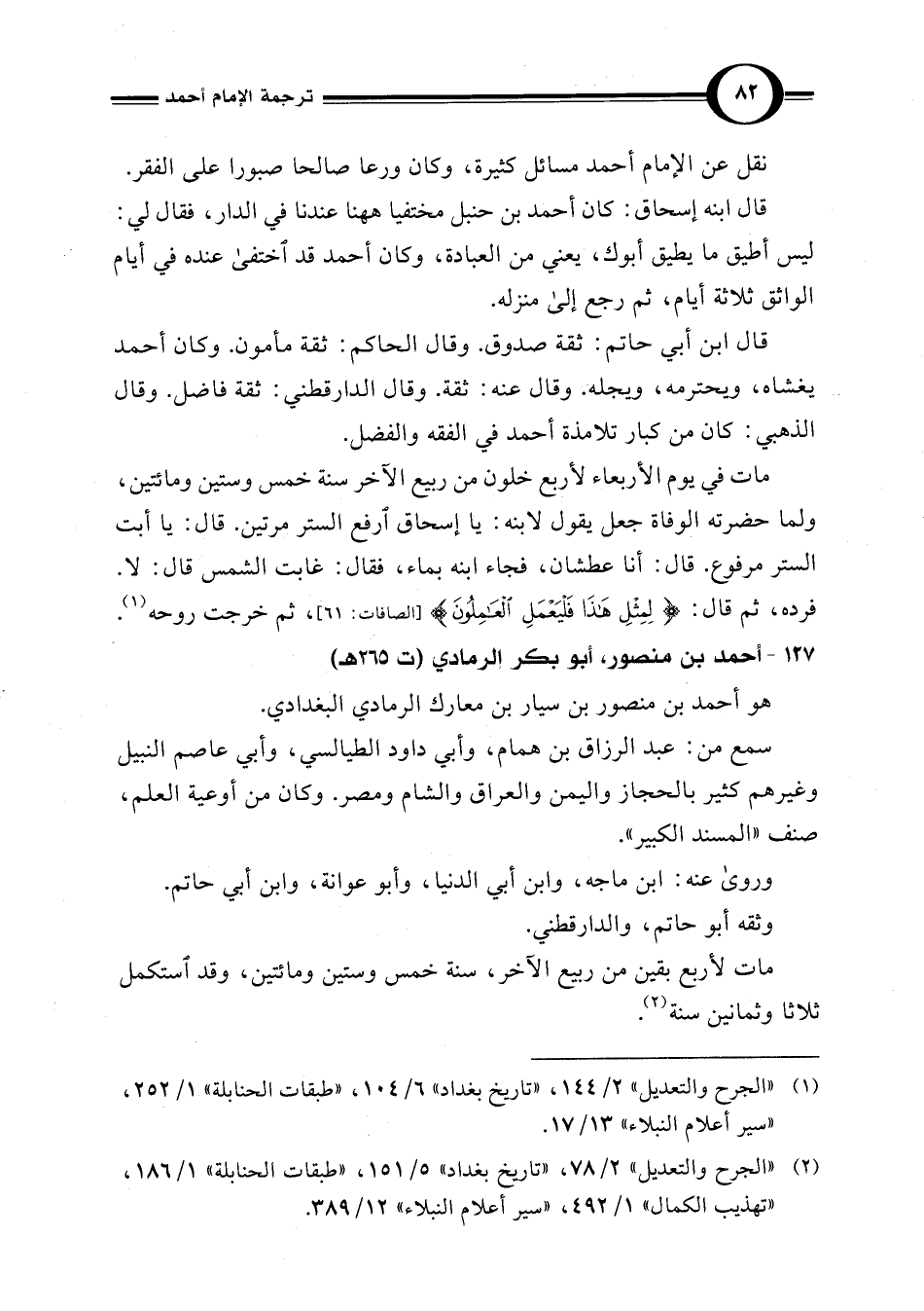 127 - أحمد بن منصور، أبو بكر الرمادي (ت 265 هـ)
