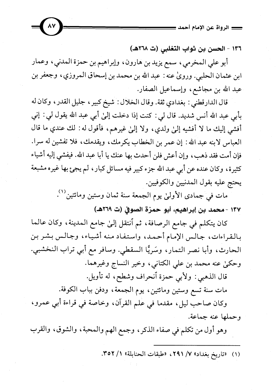 (¬1) "تاريخ بغداد" 7/ 291، "طبقات الحنابلة" 1/ 352.
