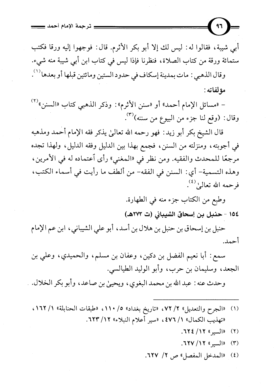 (¬1) "الجرح والتعديل" 2/ 72، "تاريخ بغداد" 5/ 110، "طبقات الحنابلة" 1/ 162، "تهذيب الكمال" 1/ 476، "سير أعلام النبلاء" 12/ 623.