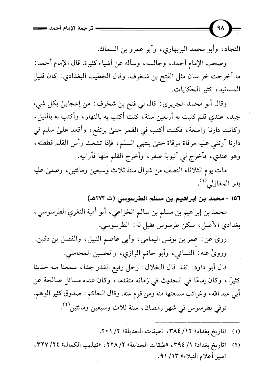 (¬2) "تاريخ بغداد" 1/ 394، "طبقات الحنابلة" 2/ 228، "تهذيب الكمال" 24/ 327، "سير أعلام النبلاء" 13/ 91.