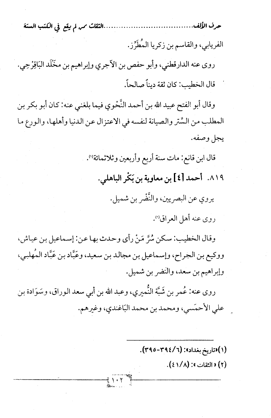 819 - أحمد [4] بن معاوية بن بَكْر الباهلي.