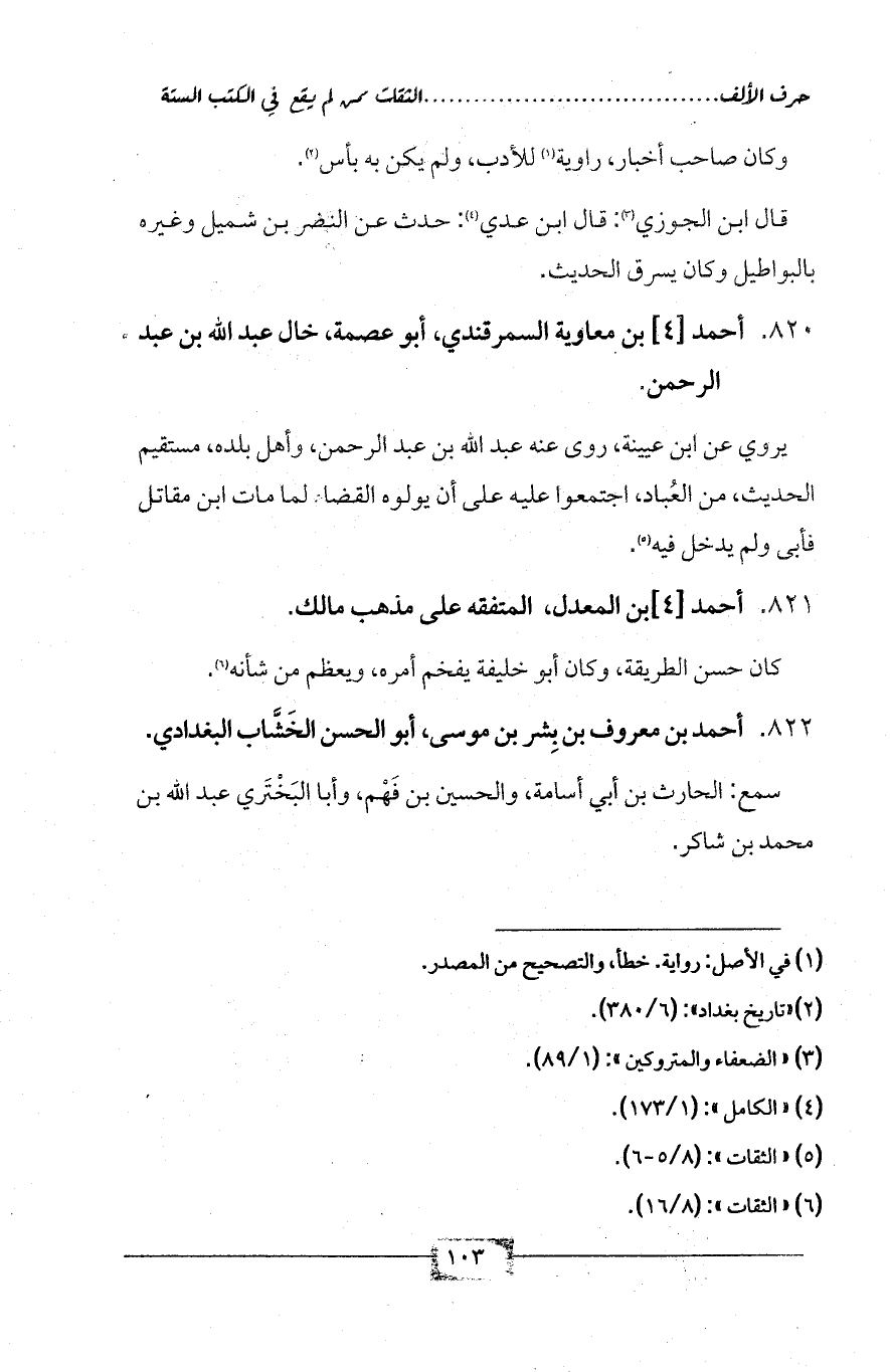 822 - أحمد بن معروف بن بِشر بن موسى، أبو الحسن الخَشَّاب البغدادي.